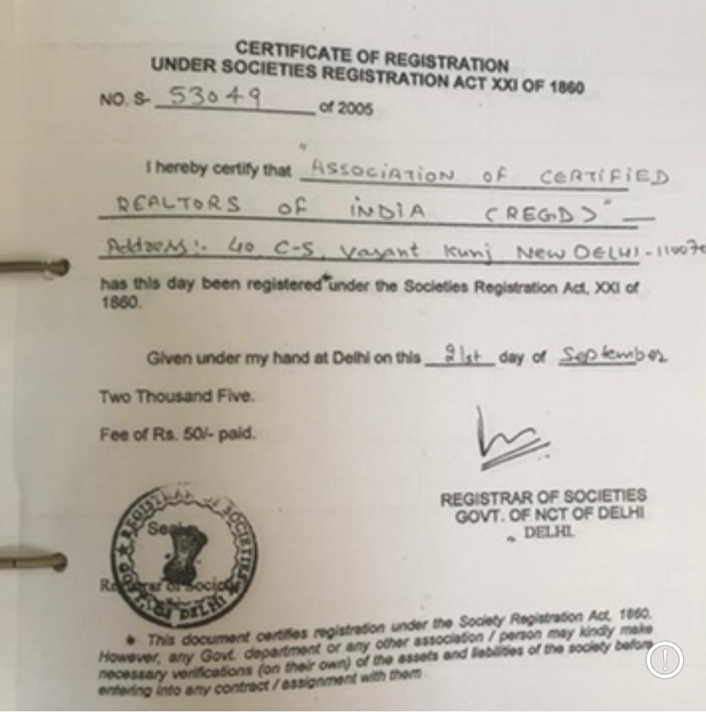 Association of Certified Realtors of India is the oldest Association in India. It was founded in 2005.